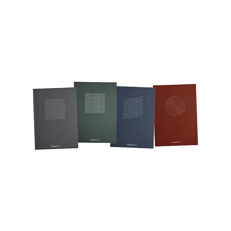 Existen cuatro colores (azul, verde, rojo y gris) y cada uno lleva un número. Están fabricados con papel de gran grosor, tapas resistentes y una portada minimalista.