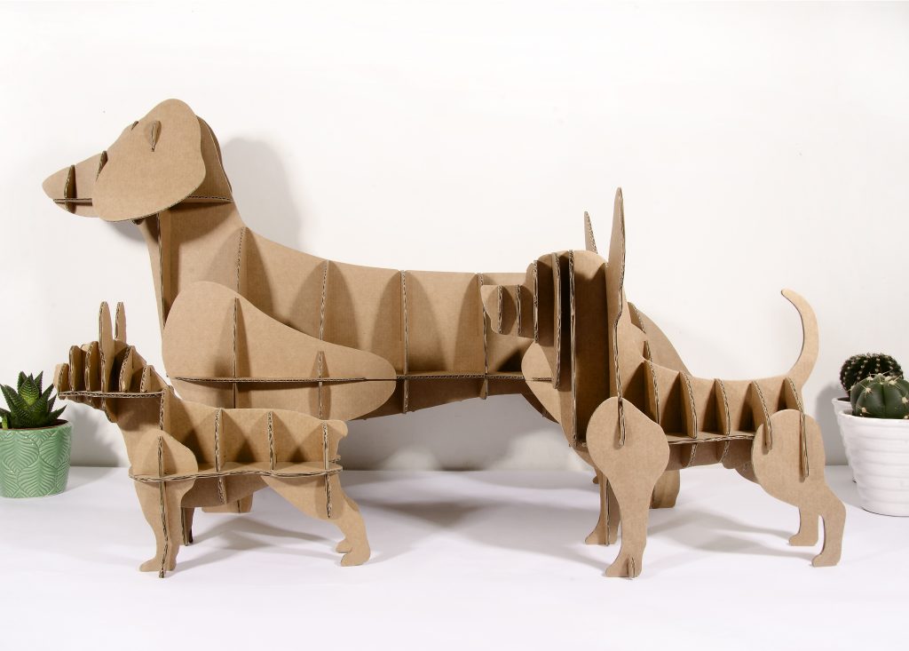 O Chucho, una colección de perros de cartón para montar uno mismo diseñados y fabricados al 100% en Madrid. Hechos en cartón de alta resistencia, un cartón de doble onda de cinco milímetros de espesor, se han diseñado en piezas desmontables. Además de un dachshund, un bulldog francés o un chihuahua, tenemos a Michi, un elegante y estilizado gato.