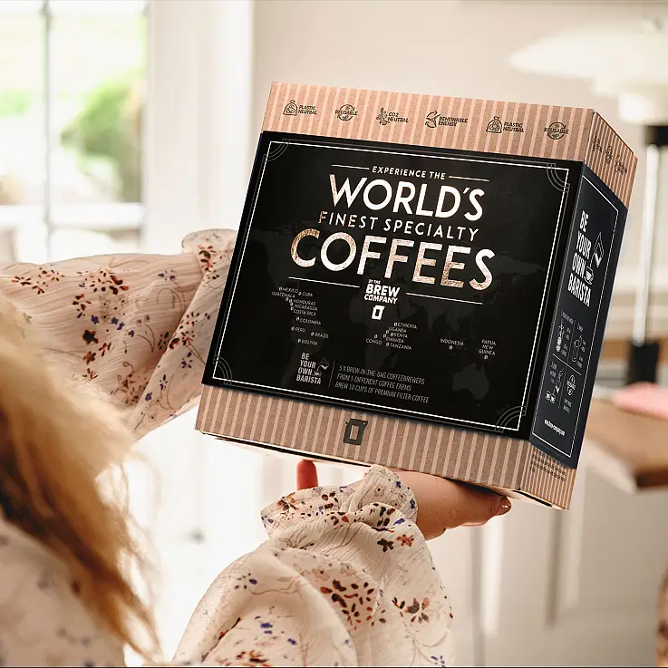 - La caja de regalo con 7 de los mejores cafés del mundo viene embalada en una caja de cartón ilustrada.