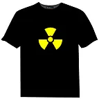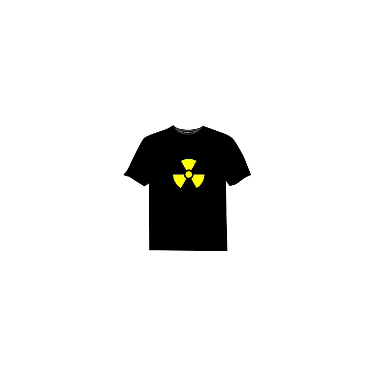 Camiseta luminosa con la señal de peligro que alerta que te encuentras en zona altamente radiactiva. La noche que te la pongas serás intocable.