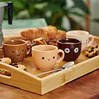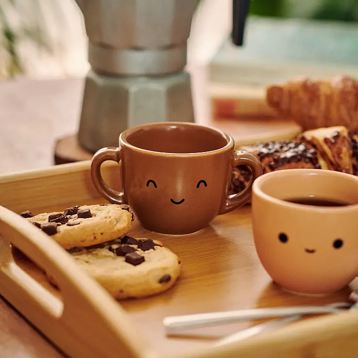 Cada tacita tiene su propia identidad: un tono, una forma y una carita diferente. Están fabricadas en cerámica de excelente calidad, con un acabado mate muy agradable al tacto. Son resistentes y aptas para microondas y lavavajillas.