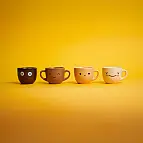- Cada tacita tiene un tono, una forma y una carita diferente.