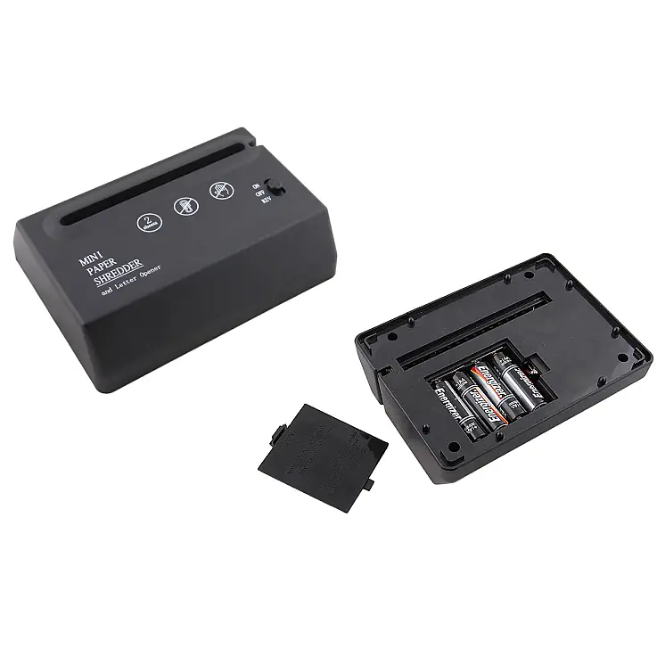 También sirve como abridor de cartas: introdúcelas por la ranura superior y dale al botón para que se recorte la parte superior del sobre.