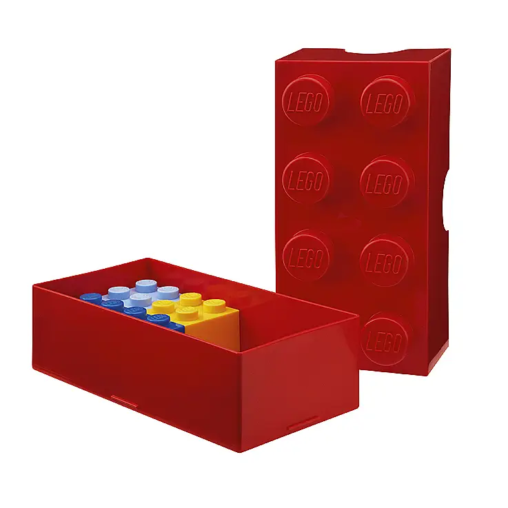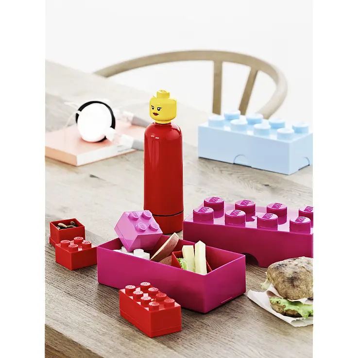 Esta fiambrera tiene la forma de uno de sus más que míticos bloques. Están disponibles en rojo, azul, verde lima y rosa.