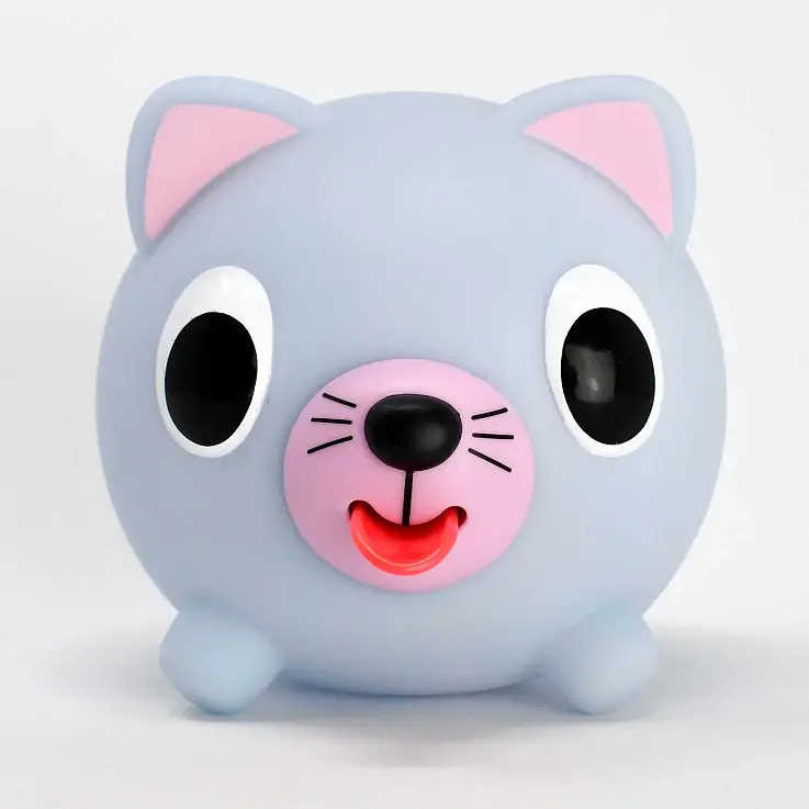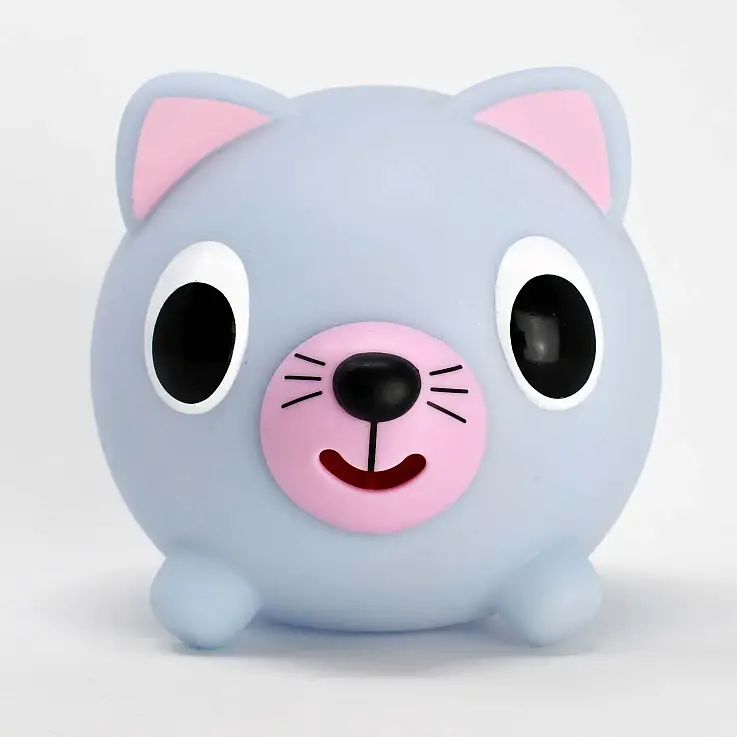 Están fabricados en plástico libre de plomo y ftalatos, ¡son muy blanditos! Puedes aplastarlos, abrazarlos, lanzarlos... al soltarlos vuelven rápidamente a su forma original. Elige entre dos adorables animalitos: un perrito amarillo o un gatito azul.
