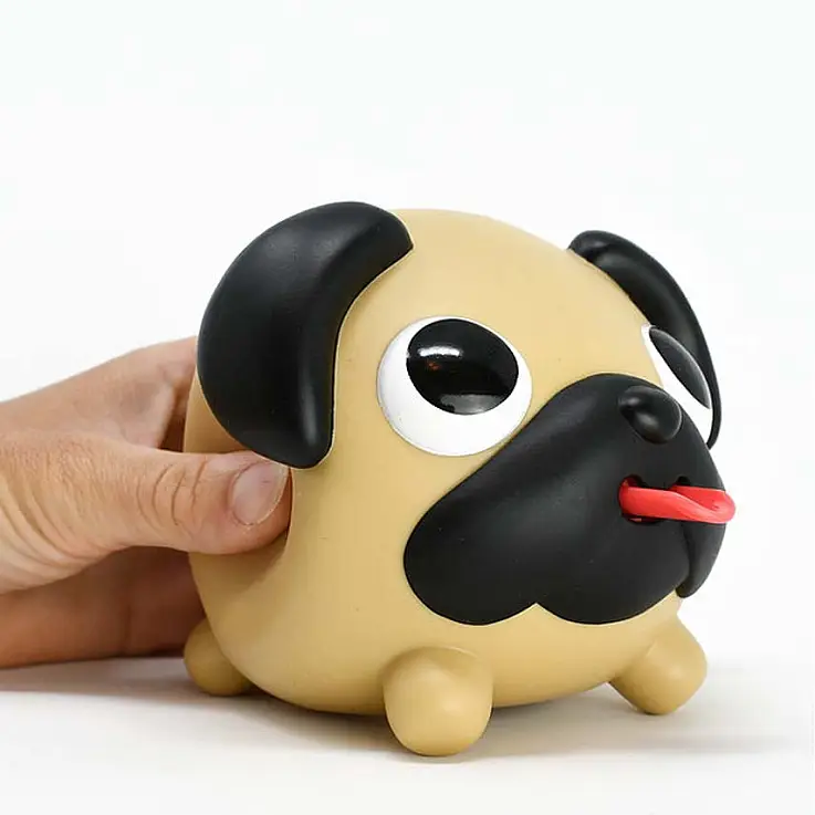 Están fabricados en plástico libre de plomo y ftalatos, ¡son muy blanditos! Puedes aplastarlos, abrazarlos, lanzarlos... al soltarlos vuelven rápidamente a su forma original. Elige entre dos adorables perritos: un carlino o un chihuahua.