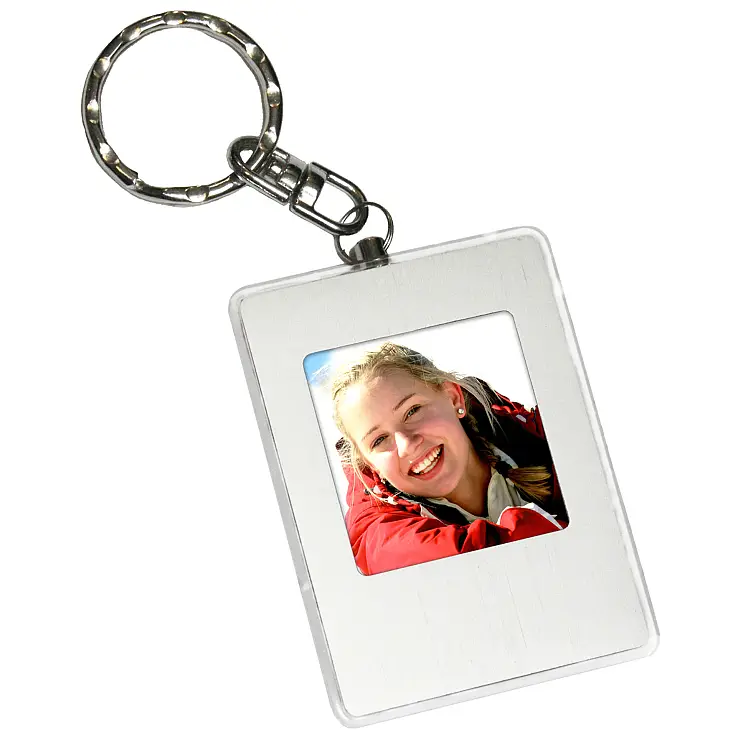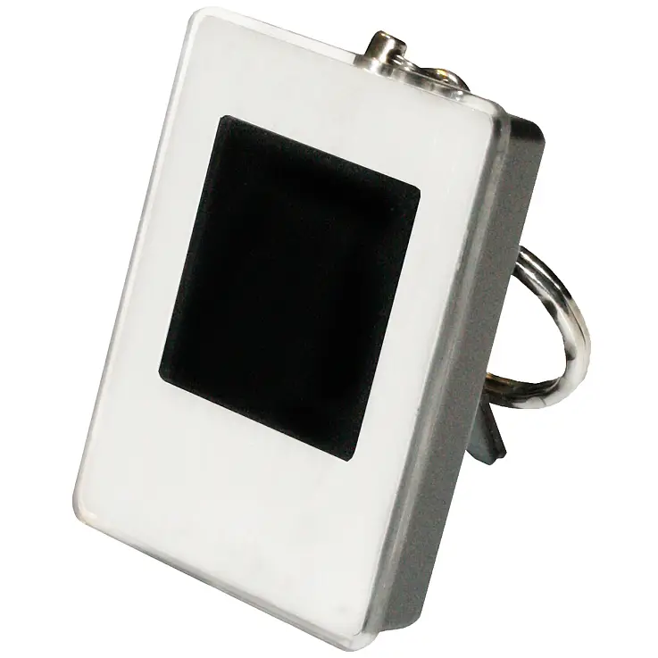Práctico llavero con marco de fotos digital integrado: caben cerca de 55 imágenes, la parte trasera está imantada y tiene pie para reposar sobre superficies planas.