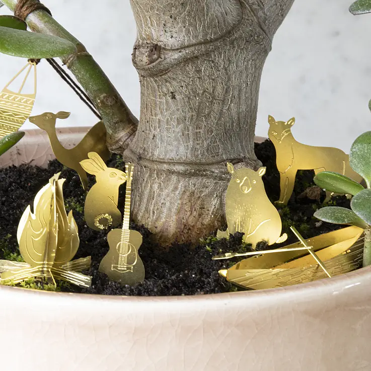- Set de mini accesorios de camping para decorar tus macetas.