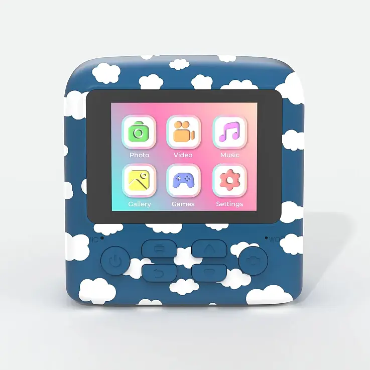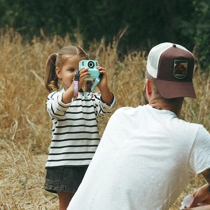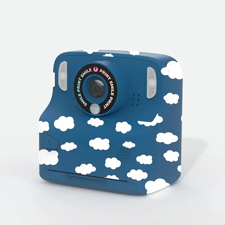 Es una cámara fácil de transportar y perfecta para llevar a todas tus aventuras gracias a su correa para la muñeca. Disponible en 3 colores: rosa, turquesa y estampado de nubes.