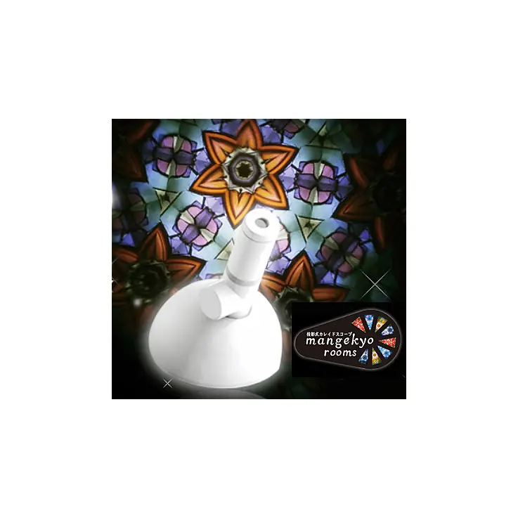 Si combinas un caleidoscopio tradicional con un aparato de luces el resultado es este increíble gadget: "Kaleidorama" de Sega Toys, un proyector capaz "pintar" paredes, techos y suelos con estampados caleidoscópicos. Es un gadget nipón, de hecho mangekyo significa caleidoscopio en japonés.