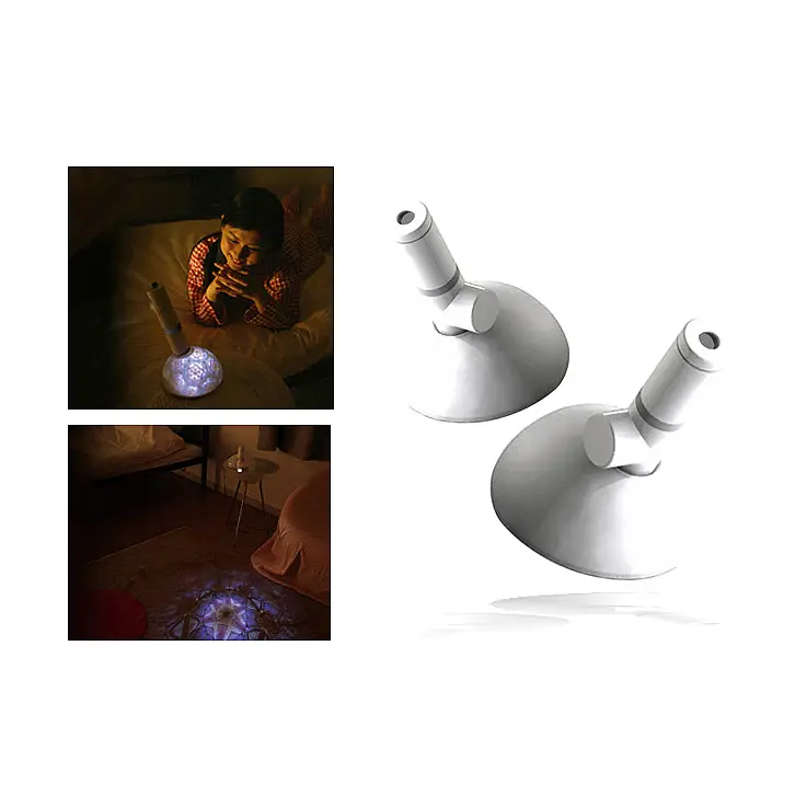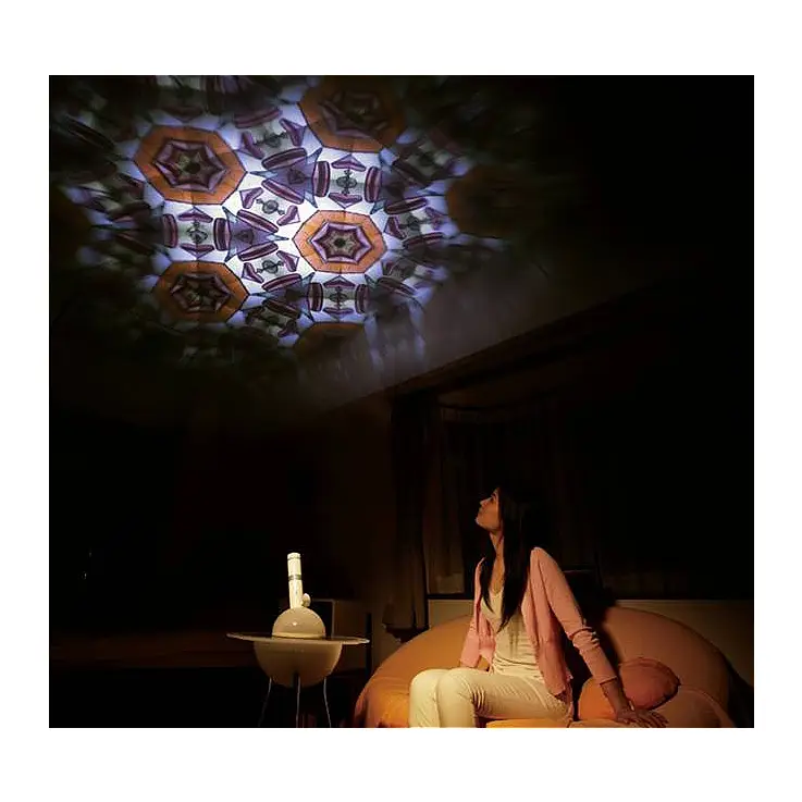 Este proyector caleidoscopio de diseño japonés incluye 7 pequeñas bandejas con forma de disco transparente y varias perlitas de colores, de manera que puedes crear tus propias composiciones combinando diferentes formas y colores. Introduce las perlitas en la bandeja, engánchala en el interior del caleidoscopio y disfruta observando un bonito juego de luces relajantes.