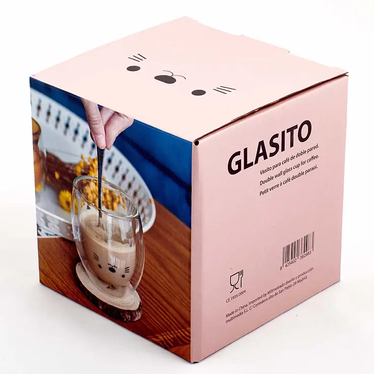 - El vaso de café de doble pared va embalado en una bonita caja de cartón ilustrada.