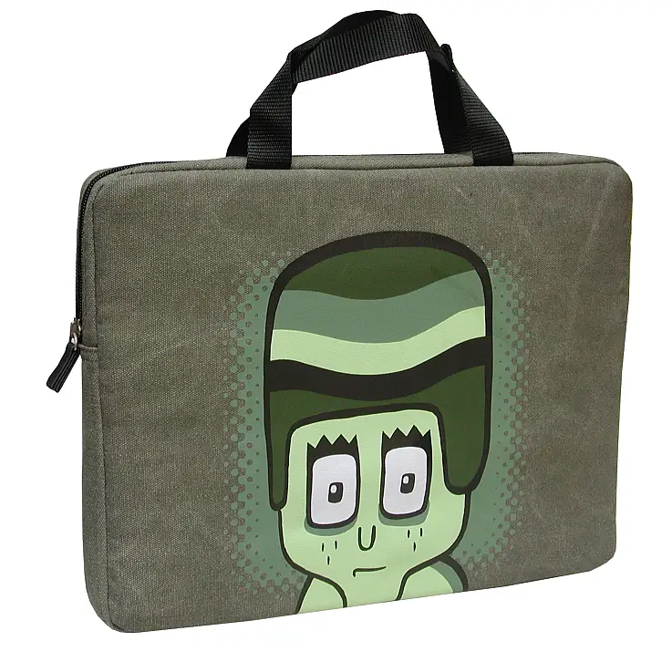 Los innumerables fans de Enjuto pueden manifestar su devoción llevando su ordenador guardado en esta funda con asas con su cara estampada. Es de color verde militar, está fabricada con loneta de algodón 100% y tiene el interior forrado y acolchado.