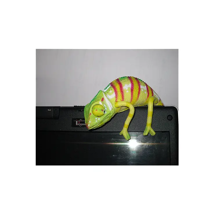 Enchufa este adorable camaleón USB a tu ordenador y colócalo sobre la esquina de tu pantalla. Girará sus ojos y te sacará la lengua en el momento menos esperado.