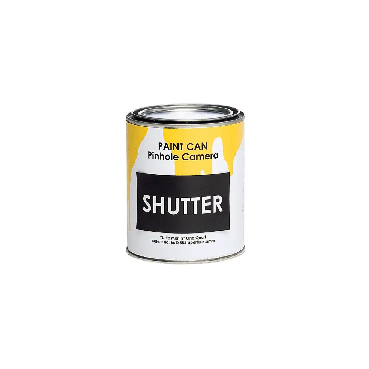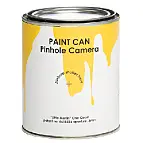 Esta lata de pintura (vacía) es en realidad una cámara pinhole y está preparada para tomar fotos según la sacas de la caja. Para que funcione, únicamente hay que tapar el pequeño agujero exterior de 0,5 mm con un imán flexible (incluido), sujetándolo con una goma (incluida) y colocar el papel fotográfico (no incluido) en el fondo de la lata con la emulsión mirando hacia el agujerito. Al destapar el agujero comienza la exposición, que terminará cuando se vuelva a tapar.