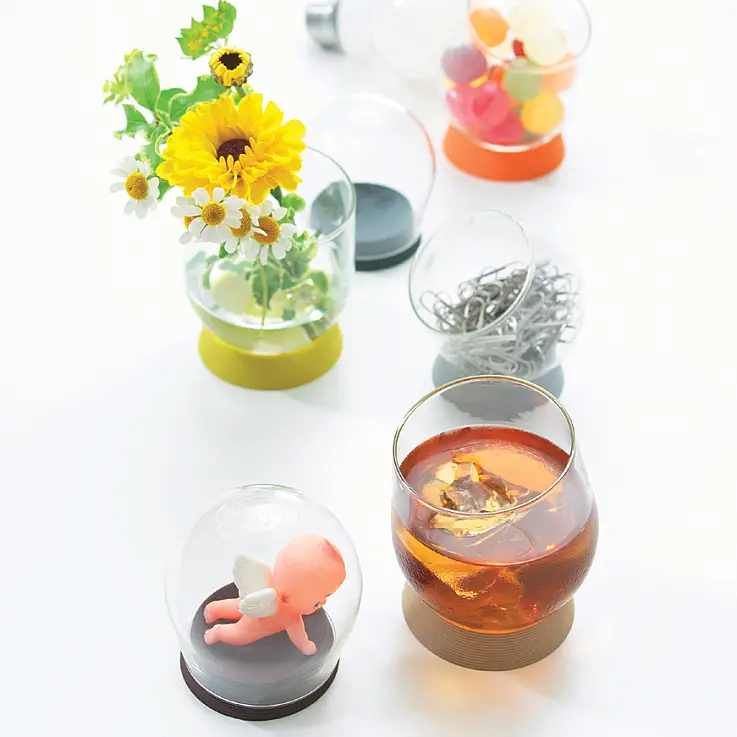 Comentarios del diseñador: "Con el mismo vidrio que se utiliza para crear esas preciosas bombillas que tan familiares nos resultan a todos, hemos diseñado un producto que transforma la percepción normal de esa "forma" del día a día en algo más. Utiliza tu propia imaginación y encuéntrale distintos usos a nuestra creación".