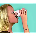 Cada vaso lleva impresa una foto de una nariz y una boca en el borde, de manera que cuando lo inclines para beber tu perfil se disfrazará con la nariz que hayas elegido. Es increíble como puede cambiar tu expresión con una nariz diferente a la tuya.
