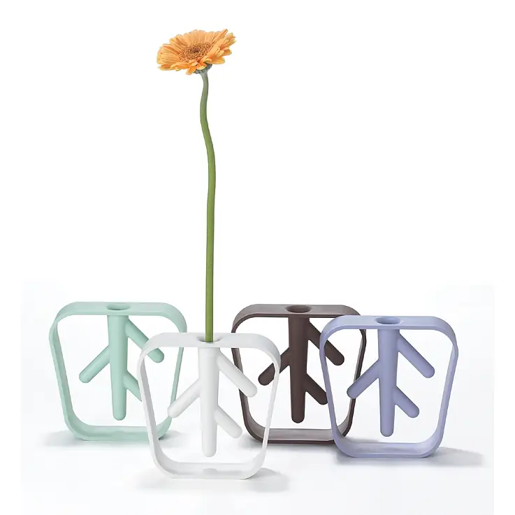 Florero de diseño japonés para colocar una flor. Su diseño evoca las raíces de la planta. Elige tu color: verde o blanco.